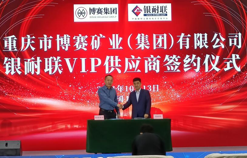 北鈿(天津)科技演講完畢后,重慶市博賽(礦業(yè))集團有限公司與唐山銀耐聯(lián)電子商務(wù)有限公司的VIP供貨商簽約儀式隆重舉行。重慶博賽集團是最早一批踐行國家號召擁抱工業(yè)互聯(lián)網(wǎng)實現(xiàn)產(chǎn)品線上交易的優(yōu)秀供貨商之一,目前在銀耐聯(lián)平臺銷售超2萬噸優(yōu)質(zhì)棕剛玉,不僅產(chǎn)品質(zhì)量過硬,完善的售后服務(wù)也得到新老客戶的廣泛認(rèn)可,成為銀耐聯(lián)平臺第一批VIP供貨商。博賽集團在工業(yè)互聯(lián)網(wǎng)領(lǐng)域取得了突出成績,同時與博賽(礦業(yè))的深入合作也證明了銀耐聯(lián)交易平臺對重塑耐火材料產(chǎn)業(yè)交易模式,推動行業(yè)健康發(fā)展起到的關(guān)鍵性作用。博賽集團賽特剛玉副總經(jīng)理王振杰,唐山銀耐聯(lián)電子商務(wù)有限公司副總裁魏雨寶上臺進行了簽約。