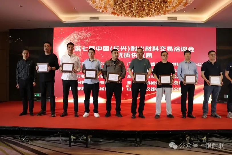 4月24日,第七屆中國(guó)(長(zhǎng)興)耐火材料交易洽談會(huì)在長(zhǎng)興溫德姆至尊豪庭大酒店隆重舉辦,來(lái)自全國(guó)各地的耐材供應(yīng)商、采購(gòu)商600多家企業(yè)歡聚一堂,共襄盛會(huì)。24日晚上主辦方銀耐聯(lián)舉行了盛大的歡迎晚宴并進(jìn)行了銀耐聯(lián)優(yōu)秀供貨商、采購(gòu)商的頒獎(jiǎng)典禮,晚宴座無(wú)虛席,賓主盡歡。